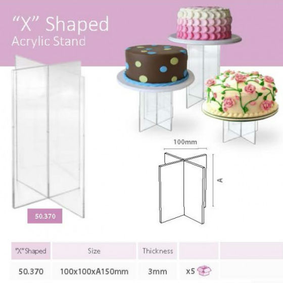 Expositor de metacrilato en forma de “X”, de 100x100xA150mm, con espesor de 3mm. Cinco unidades por paquete.